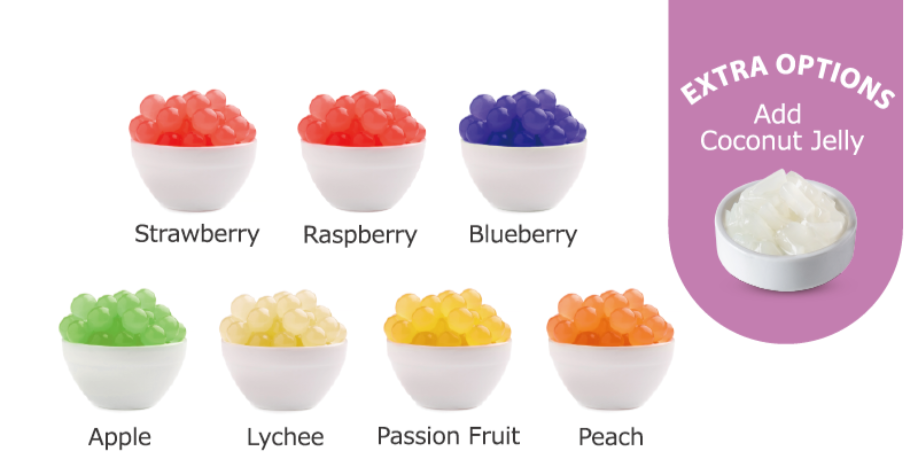 Flavor: Strawberry. Raspberry. Blueberry. Apple. Lychee. Passion Fruit. Peach